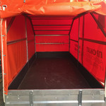 Откидные борта: задний и передний, фиксируется бортовыми замками и цепочками, усилены фанерой